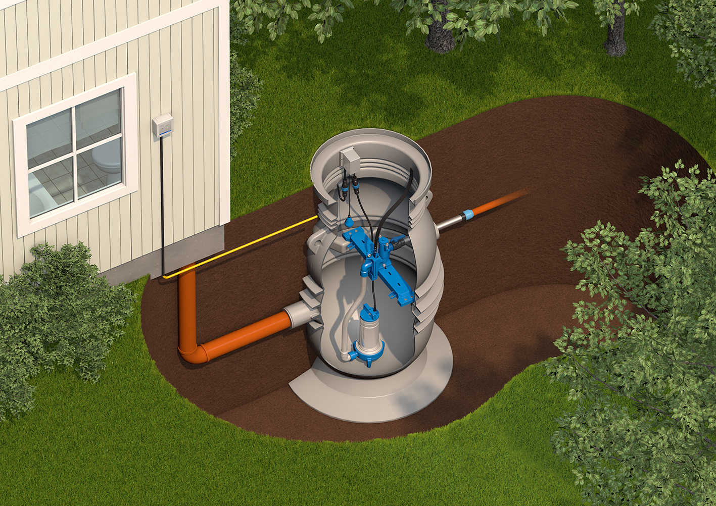 Flygt Compit pump installation cutaway